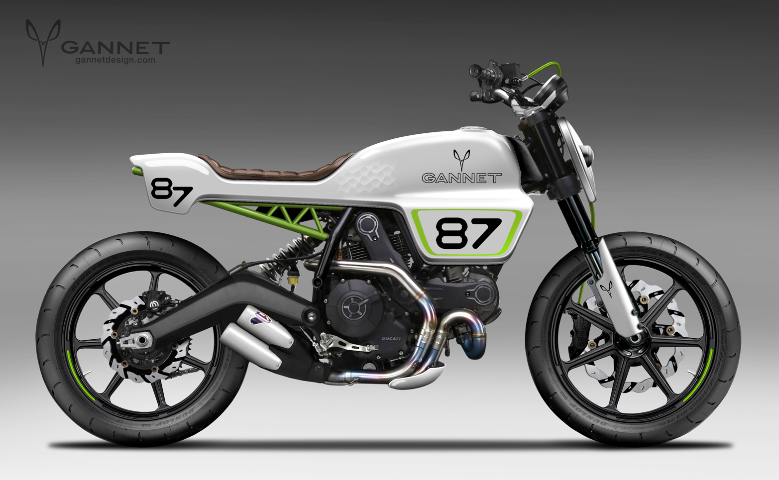 The design is based on a Ducati Panigale 1199 and it is a mix of classic cafe racer proportion and a modern mono place street fighter…hence Cafe Fighter.